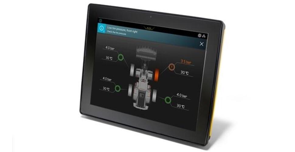 The pressure and temperature of each individual tyre is shown on a screen in the cab.