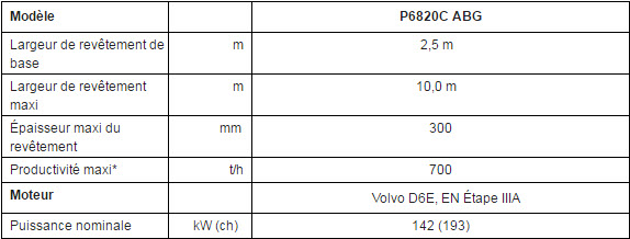 *selon l’épaisseur de revêtement, la largeur de revêtement et la vitesse de pose peuvent varier en fonction des conditions du chantier.