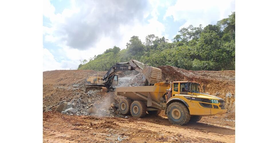An ActiveCare enabled Volvo crawler excavator and articulated hauler working safely, productively, and efficiently at one of IMK's gold mines in Central Kalimantan, Indonesia.
