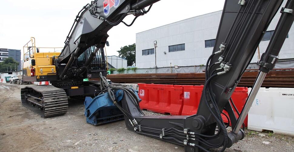 One such contractor benefitting from this peace of mind is leading transport infrastructure and civil engineering company Or Kim Peow Contractors Pte Ltd (OKP), which recently purchased two new Volvo EC350DL excavators with a specially designed front attachment for vibro hammer applications.