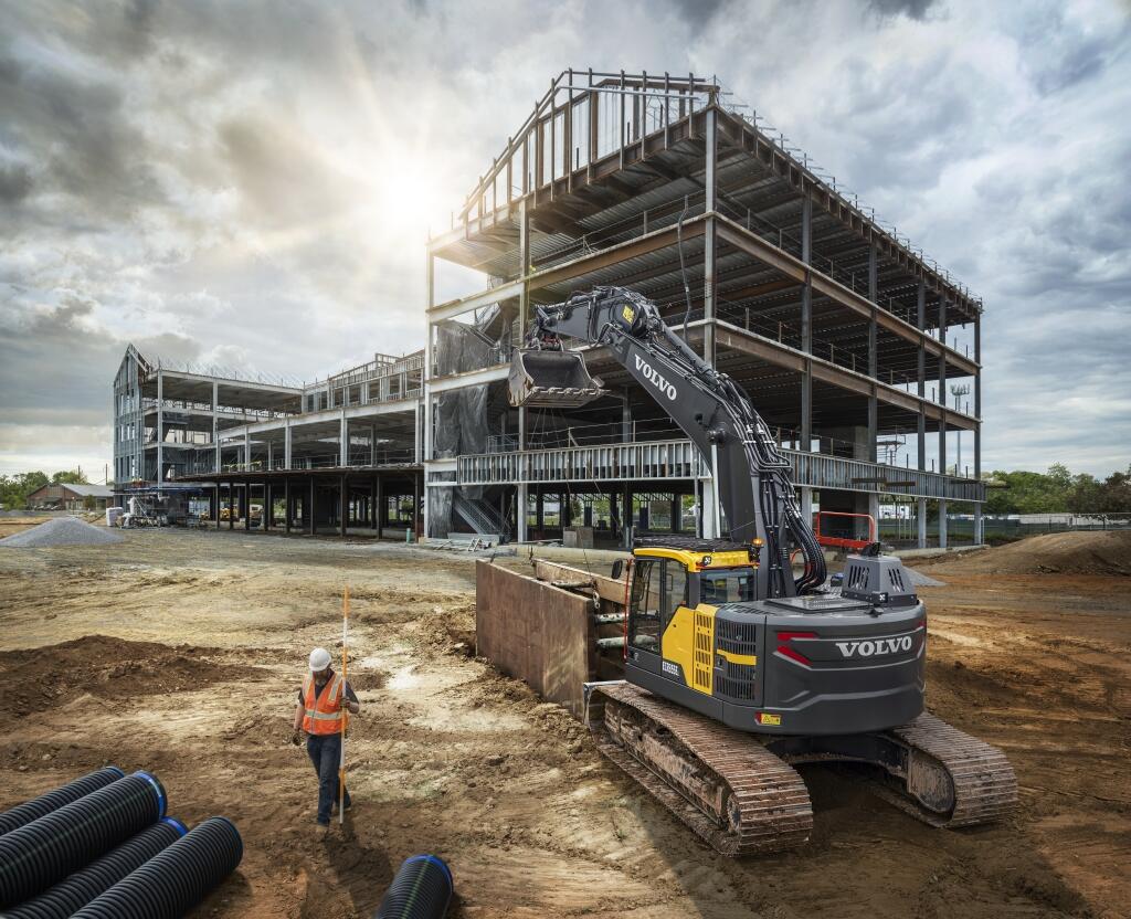 Presentamos la excavadora de radio de giro corto ECR355E de Volvo Construction Equipment. Con un diseño que se fundamenta en la serie E de eficacia probada, este modelo cuenta con una potencia y una precisión inigualables para ser la máquina de 35 toneladas perfecta para la colocación de tubos, la entibación de zanjas y obras de servicios públicos.