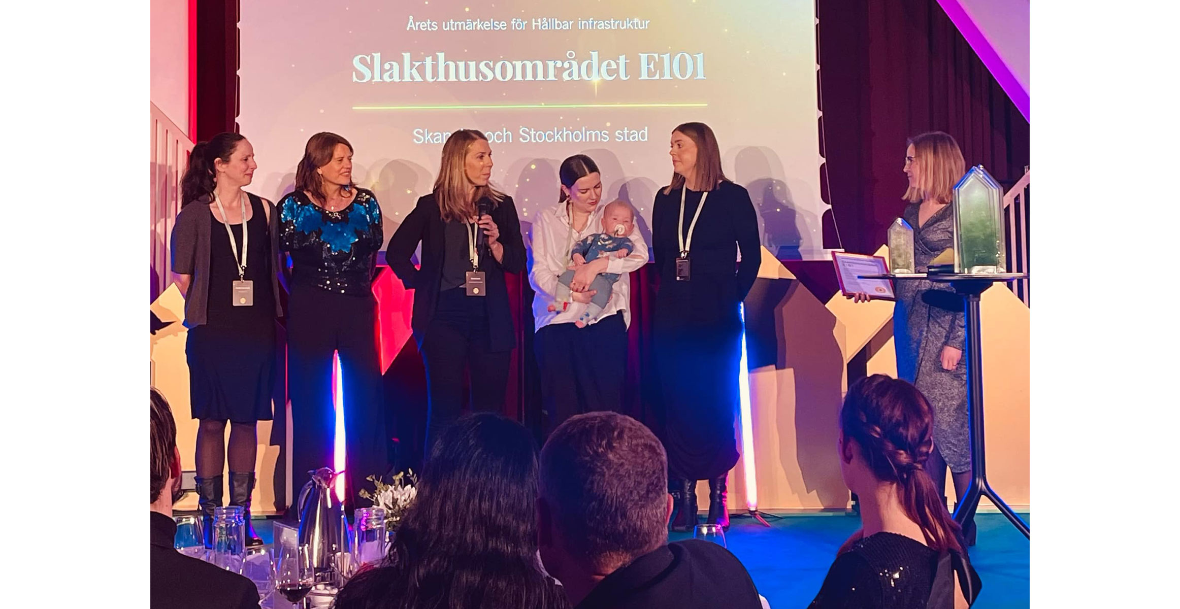 At the Swedish Green Building Awards on November 28, the Slakthusområdet project was named Sustainable Construction Project of the Year. From left to right: Linda Cronstedt, Elin Coleman, Lisa Kroon, Lisa Wohlfart, and Ida Bergman, of Skanska.