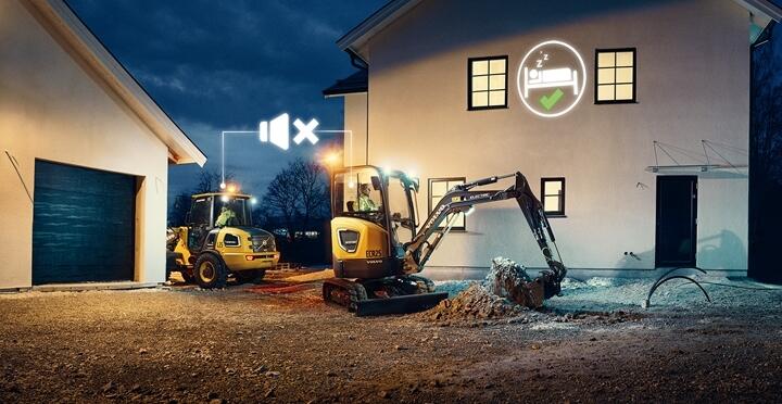 Ce ne sont pas uniquement les résidents et les passants qui en sont les bénéficiaires. Les machines électriques offrent également un environnement de travail plus confortable, plus sain et plus sûr aux conducteurs et aux travailleurs de chantier. Moins de bruit et de vibrations réduit les niveaux de stress et permet de communiquer plus facilement sur le chantier sans devoir crier ou arrêter de travailler. Et, avec les machines électriques, il n'y a pas de fonctionnement au ralenti non plus, car la machine s'arrête quand elle n'est pas utilisée et redémarre automatiquement lorsque les commandes sont manipulées, ce qui signifie que le bruit reste à un niveau minimum.