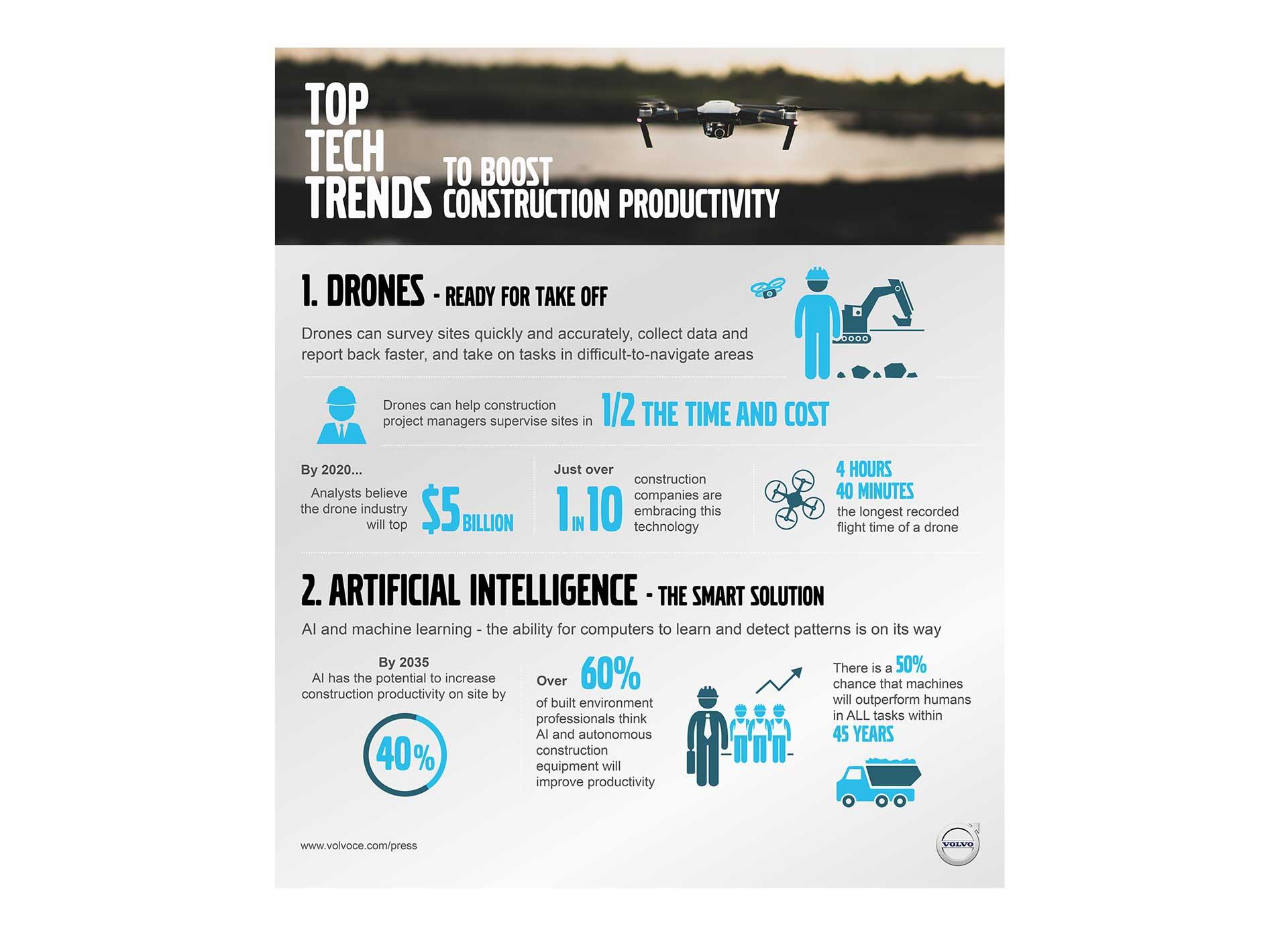 In this bitesize collection of infographics, we look at the top tech trends driving the industry forward and explore how these innovations are helping to boost communication and save time and money.