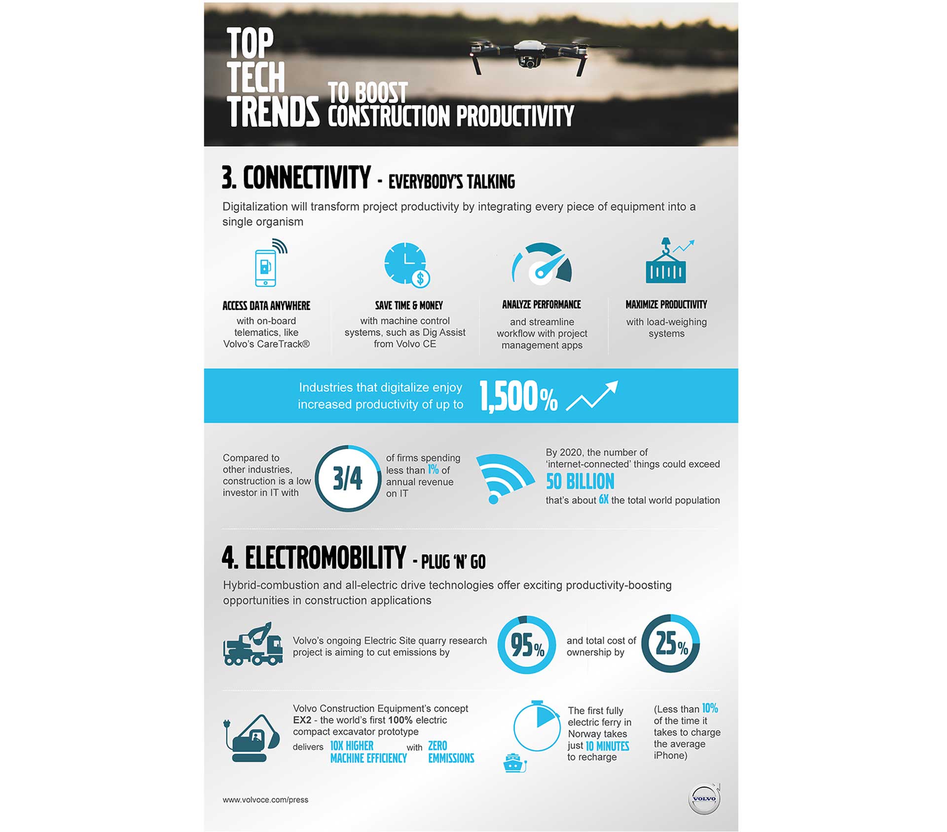In this bitesize collection of infographics, we look at the top tech trends driving the industry forward and explore how these innovations are helping to boost communication and save time and money.
