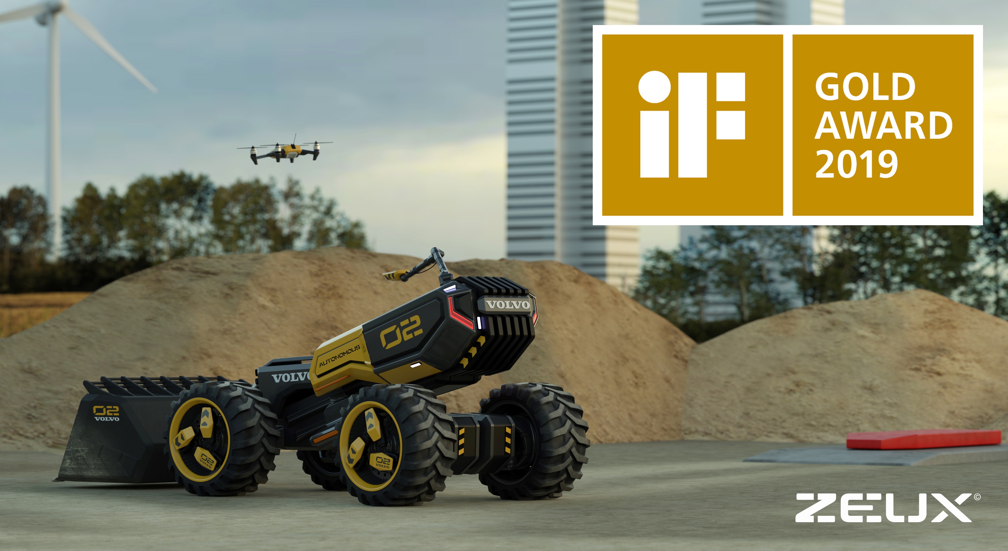 The Volvo Concept Wheel Loader ZEUX – a digital prototype for a real-world autonomous construction machine – has won a coveted Gold Award in the Professional Concept discipline at the global iF Design Awards on Friday (March 15th). The revolutionary concept swept the jurors away as an exciting demonstration of how driverless machines can be made safer in the future.