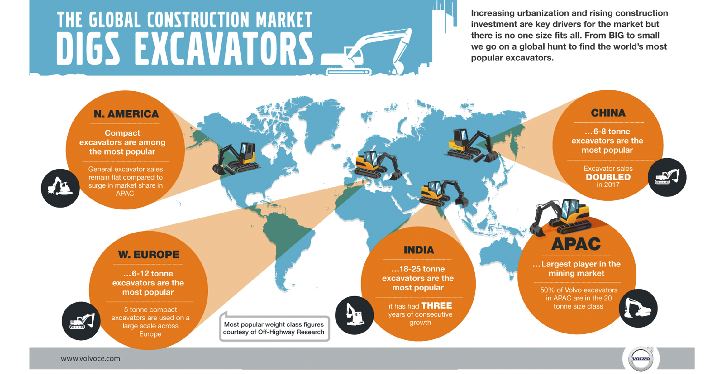 INFOGRAPHIC: The global construction market digs excavators Increasing urbanization and rising construction investment are key drivers for the market but there is no one size fits all. From BIG to small we go on a global hunt to find the world’s most...