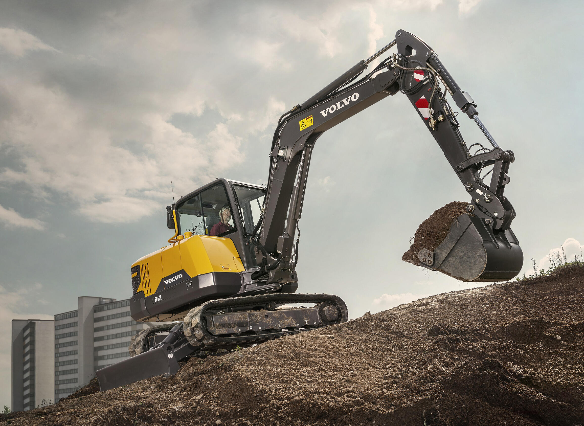 The new EC60E crawler excavator from Volvo Construction Equipment (Volvo CE) is built to fit any jobsite – from confined spaces to major construction projects. This machine offers improved traction, excellent swing force and high lifting capacity to achieve outstanding results, fast. With a compact design, long arm, and optional fixed boom and offset boom, the versatile and powerful EC60E is suitable for a large range of applications.