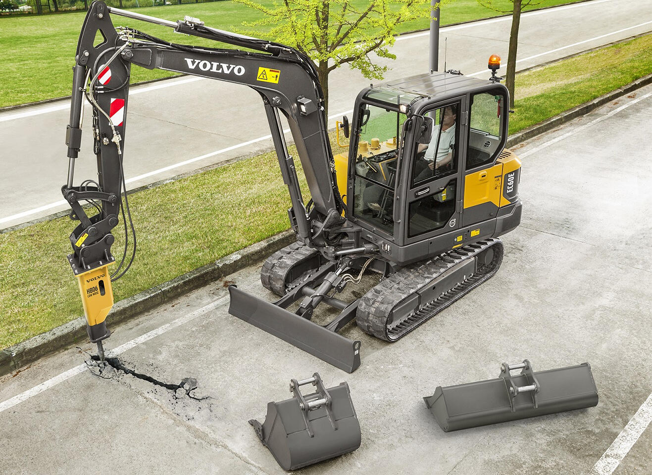 For outstanding versatility, the EC60E can be equipped with a wide range of durable attachments that are suitable for a wide range of applications, including utilities, building, agriculture, landscaping and forestry. These attachments can be easily changed to save time and reduce costs, and the machine’s design, hydraulics, piping and in-cab switches combined with the Volvo attachments range to allow the EC60E to take on a variety of tasks with ease.
