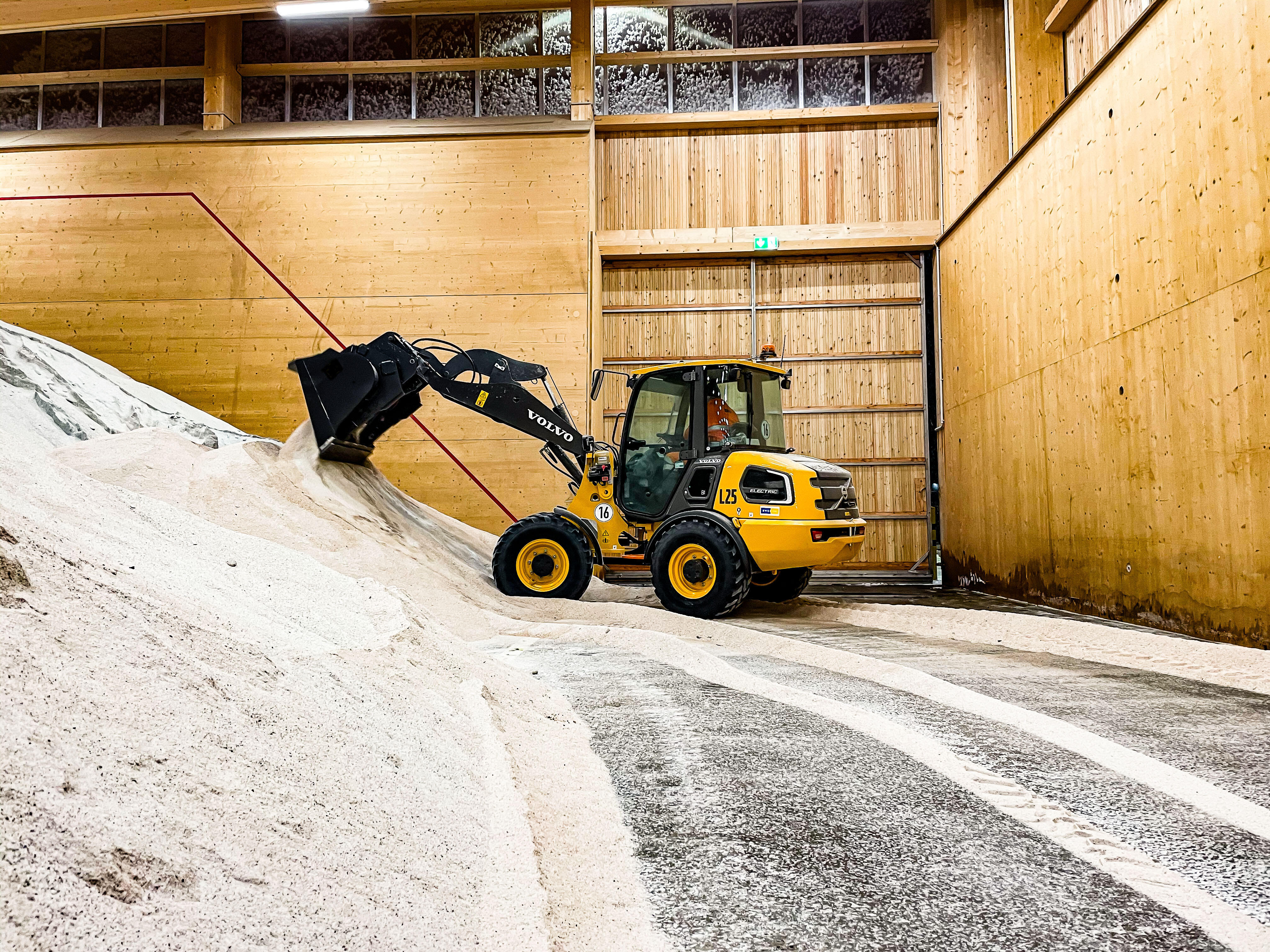 The L25 Electric is working inside AWB’s depot handling the transportation of grit for the city’s streets