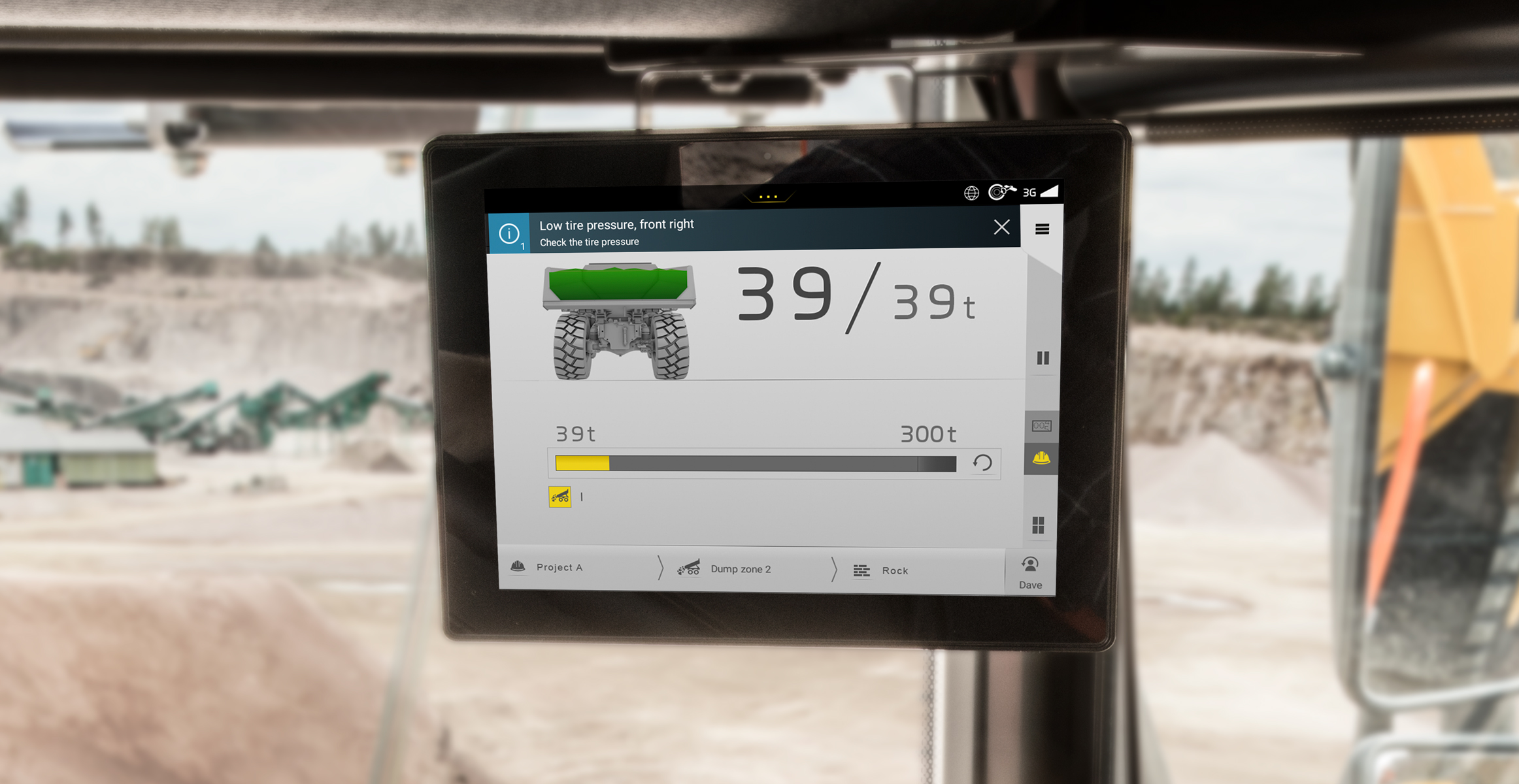 With real-time information on tire pressure and temperature, operators can ensure that tires are operating within the correct parameters. If not, operators receive an alert and visual display of which tire needs attention.