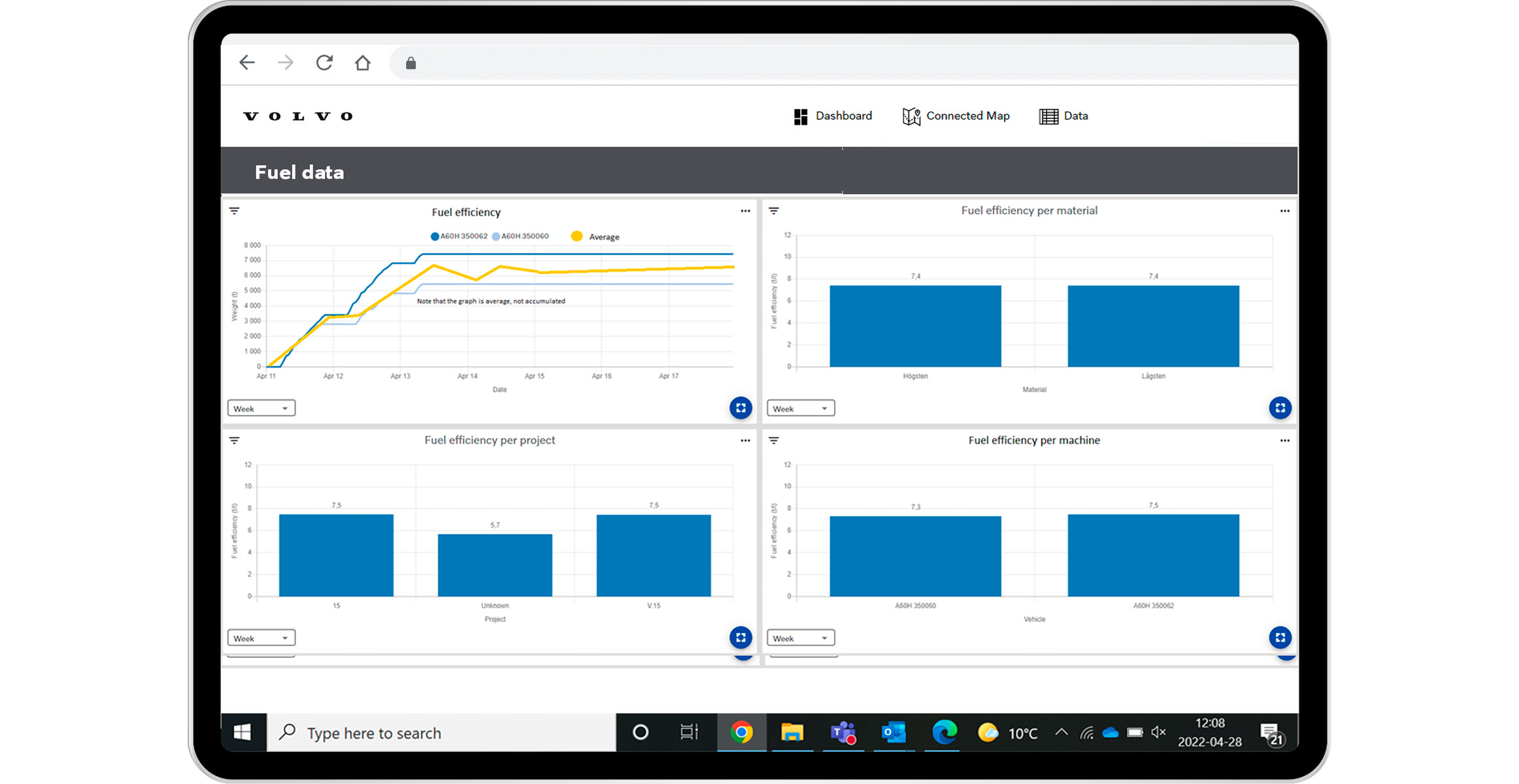 • Access to a pre-configured fuel efficiency dashboard in the Office portal (only Volvo Machines).