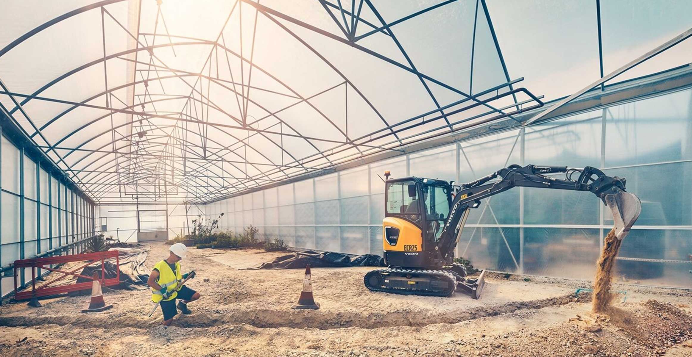 Two electric machines from Volvo CE proved versatile, together with a variety of attachments, in helping construct a 10,000 sq meter garden nursery with outdoor landscaping and carrying out repair, maintenance and material handling tasks across the site and inside the new nursery and biomes.