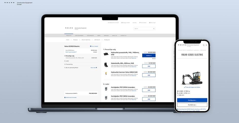 konfigurere og få tilbud på elektriske kompakte gravemaskiner og hjullastere. Løsningen er et nytt skritt innen både e-handel og introduksjon av elektriske anleggsmaskiner i markedet.