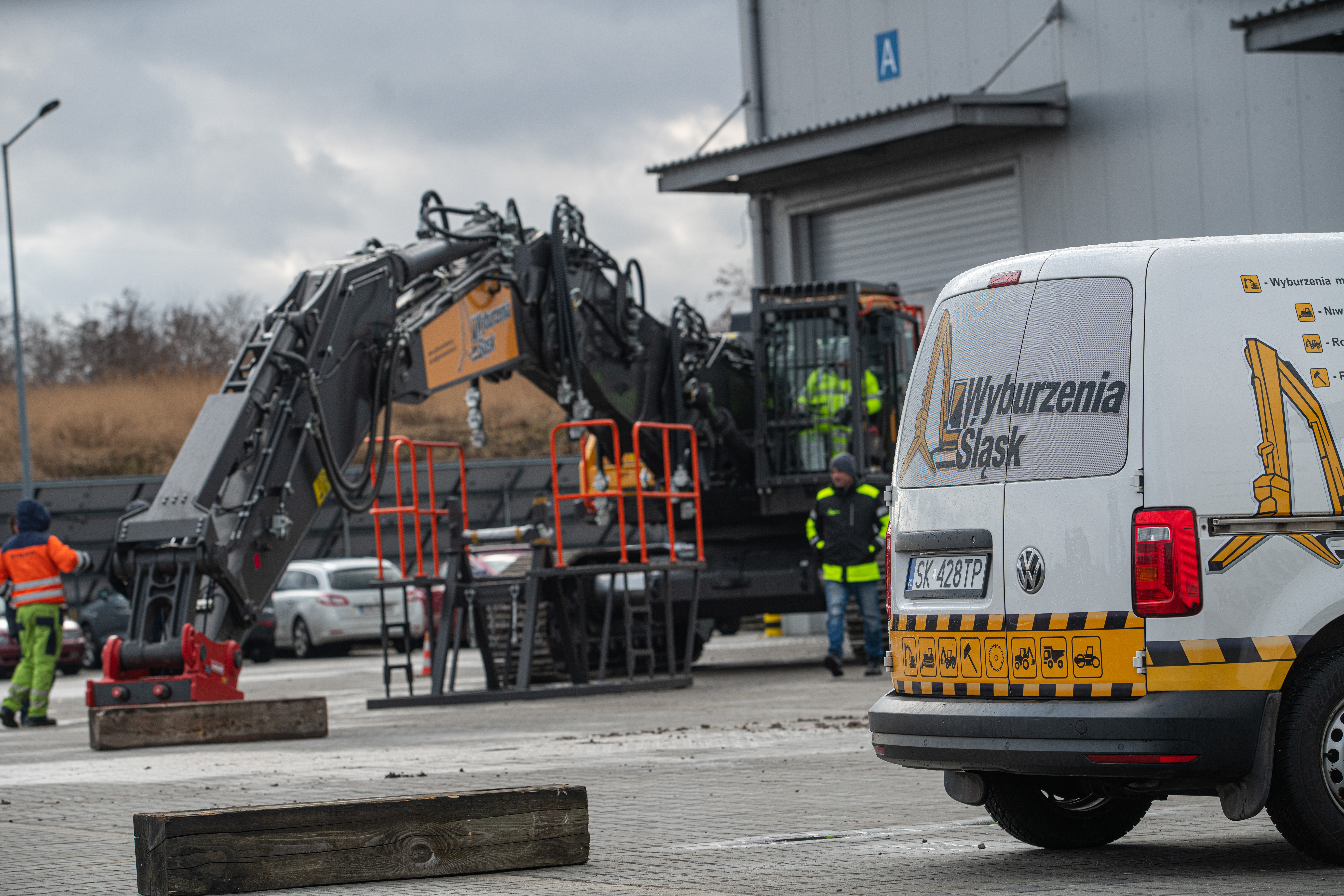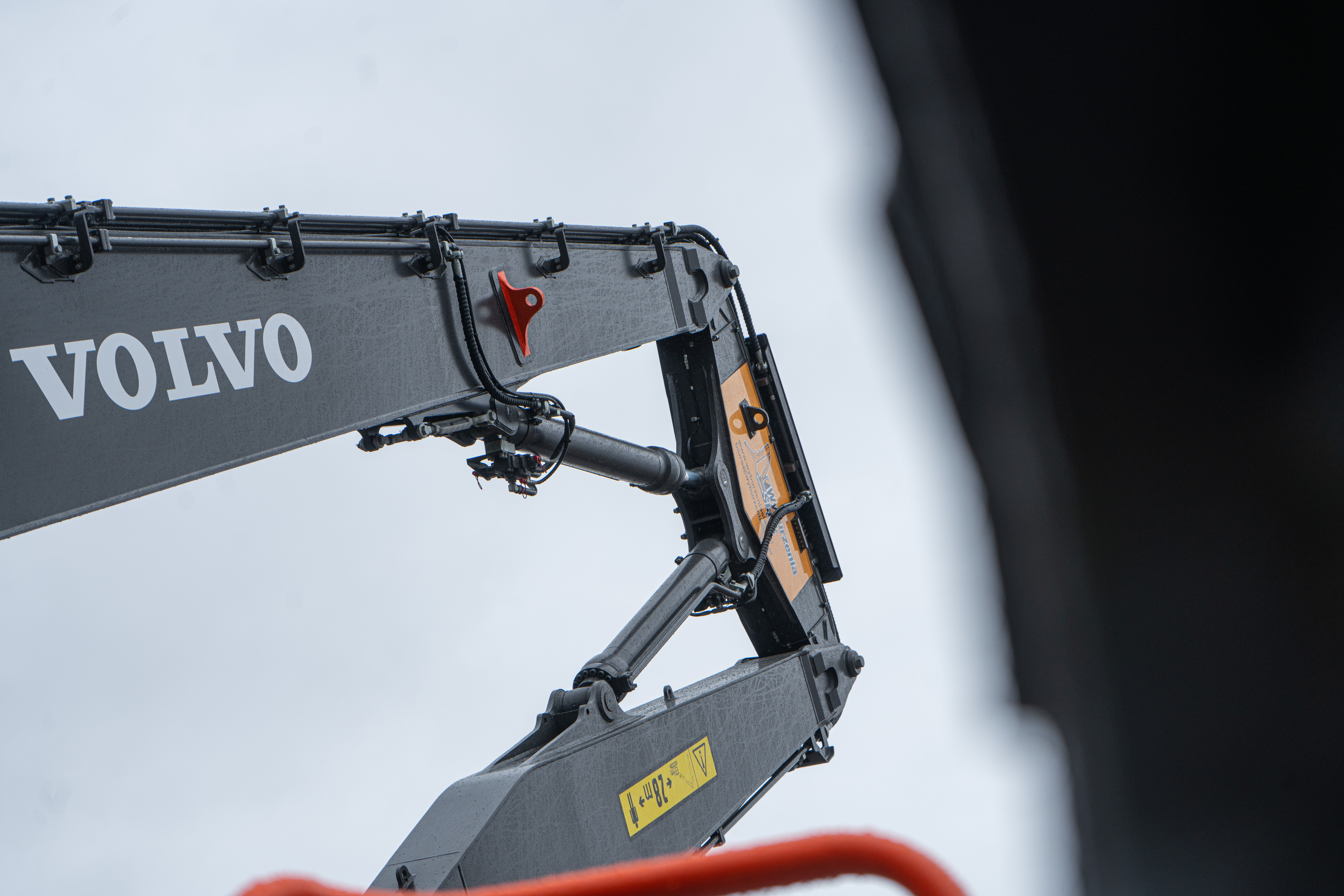 Dwa rodzaje wysięgników, jeden do prac wyburzeniowych i jeden standardowy koparkowy, dlatego też priorytetem stała się szybkość i łatwość ich montażu do maszyny.
