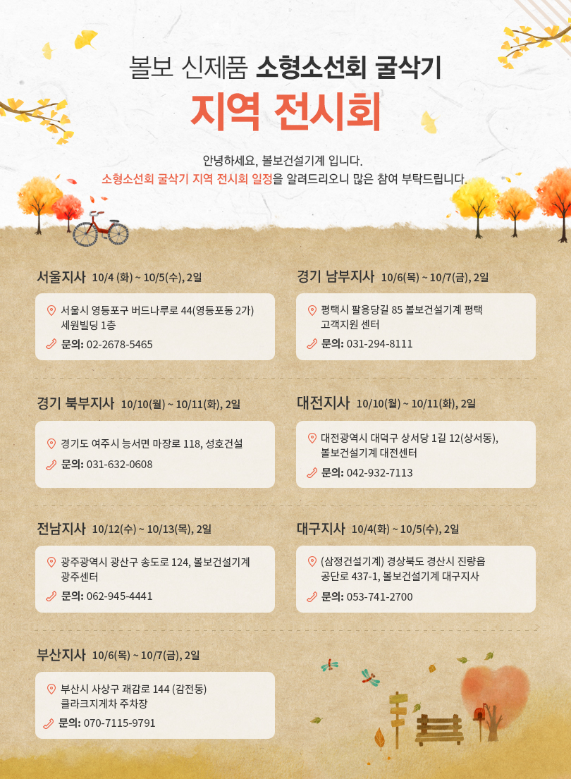 볼보 신제품 소형 소선회 굴삭기 전시회 일정 안내