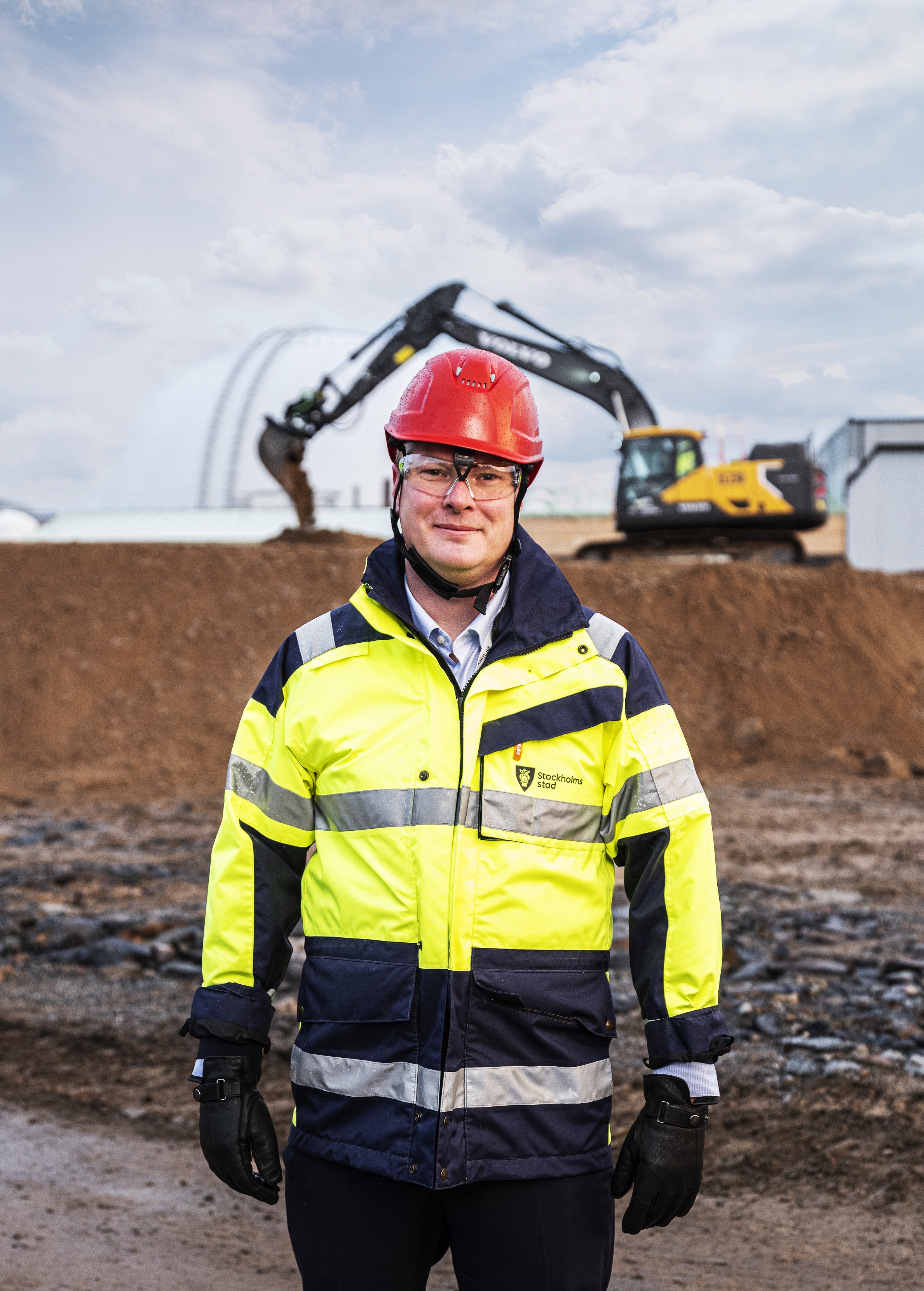 Anders Österberg, biträdande finansråd och ordförande i exploateringsnämnden i Stockholms stad, säger: ”Vi vill driva utvecklingen av fossilfria entreprenader och det kan vi göra genom att ställa anbudskrav i våra upphandlingar. I entreprenaden, där stora mängder berg och jord ska schaktas, är ett av kraven att minst 10 % av maskintimmarna ska drivas med el.”