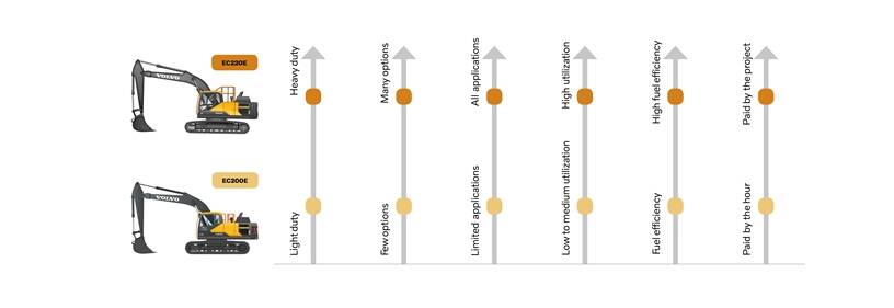 EC200E and EC220E - both with outstanding comfort and impressive performance! The introduction of EC200E gave a new alternative in the 20-ton excavator class. Together with EC220E finding your true excavator match has never been easier. EC200E is perfect for general construction while EC220E is also for tougher applications and can be equipped with Volvo Active Control.