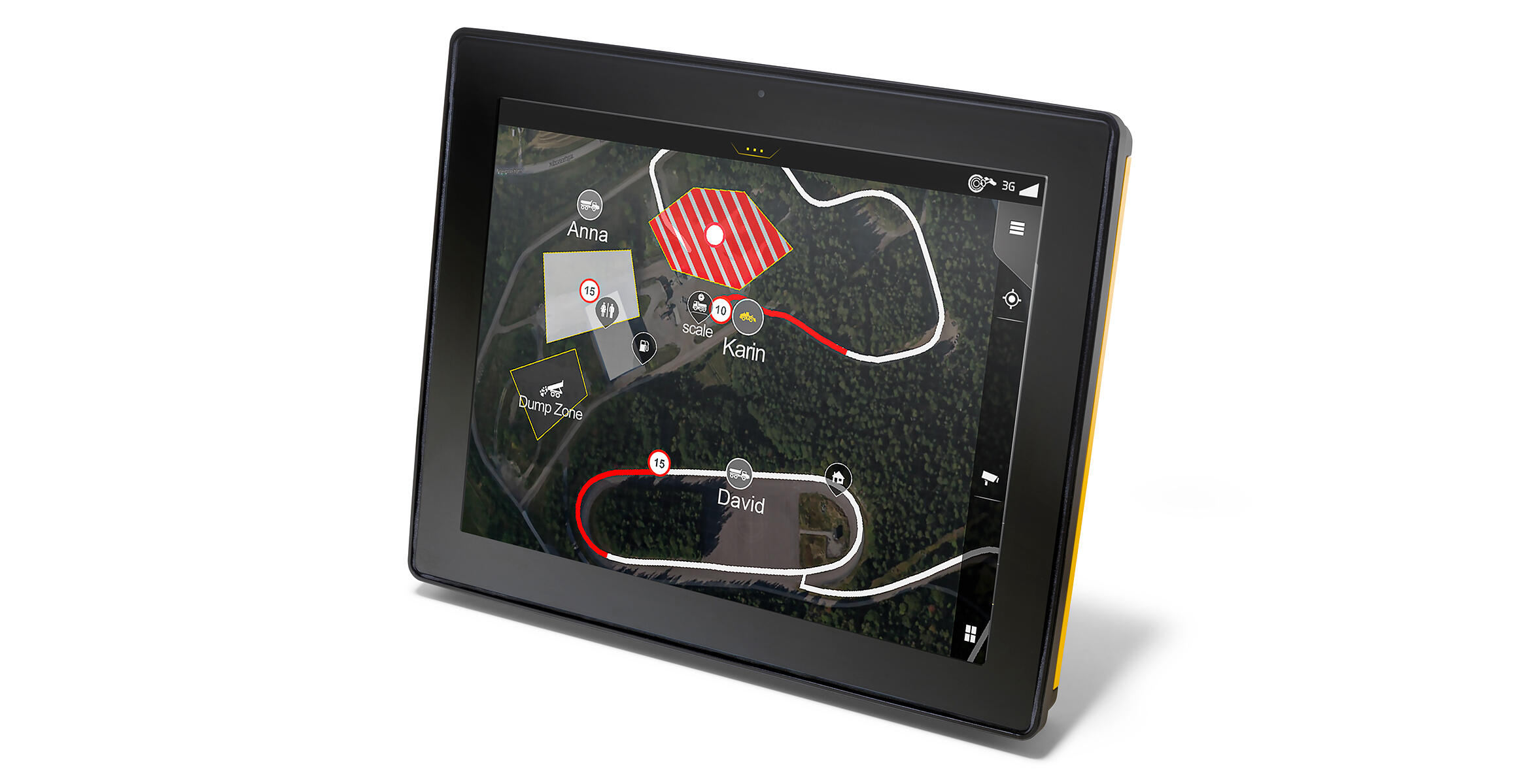 The other three apps are considered Toolbox Applications. The Calculator can be used for quick mathematical calculations and unit conversions. The Notes app allows for digital notetaking in the cab. And the Weather app gives operators current and upcoming weather conditions to inform operation decisions.