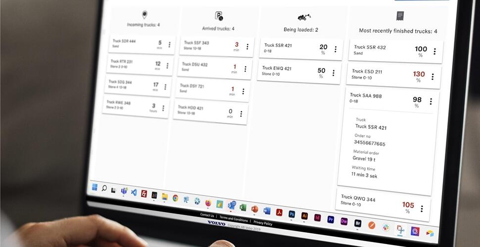 Connected Load Out is connecting and sharing information digitally between the wheel loader, site office and trucks in a quarry. Load orders can be sent directly from incoming trucks via the Connected Load Out app to the loader’s Volvo Co-Pilot. The loader operator can see an estimated arrival time and what materials to load, helping them to plan their work more efficiently and reducing stress and the risk of errors. Once the truck enters the site, the loader operator receives a notification on the Volvo Co-Pilot and can call the truck forward for loading and dispatch. A load ticket is created and sent to both the truck and site office making the entire flow visible in the Connected Load Out Office Portal.