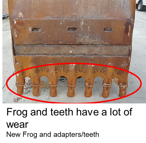 Buckets and Blades: Look for wear and cracks. You can also pick the bucket up and flip it over and look at the bucket floor for dents, cracks and wear. If the bucket has teeth, make sure they haven’t been worn down to a U shape.