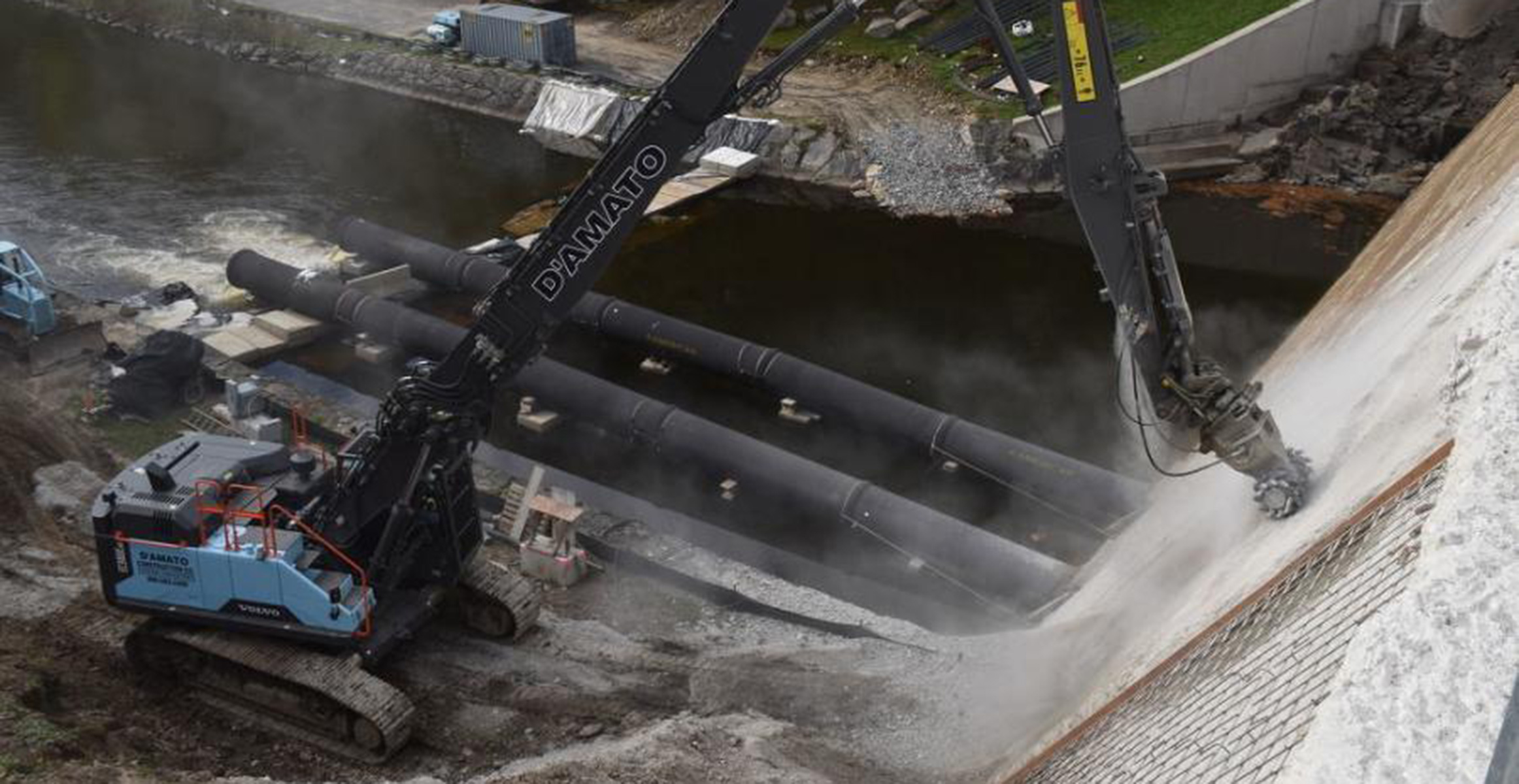 D'Amato Construction Refaces Dam with Volvo High Reach Excavator Resurfacing a dam that is 450 ft. long with 100 ft. of main spillway might be a daunting task to some. But D'Amato Construction is up to the challenge.