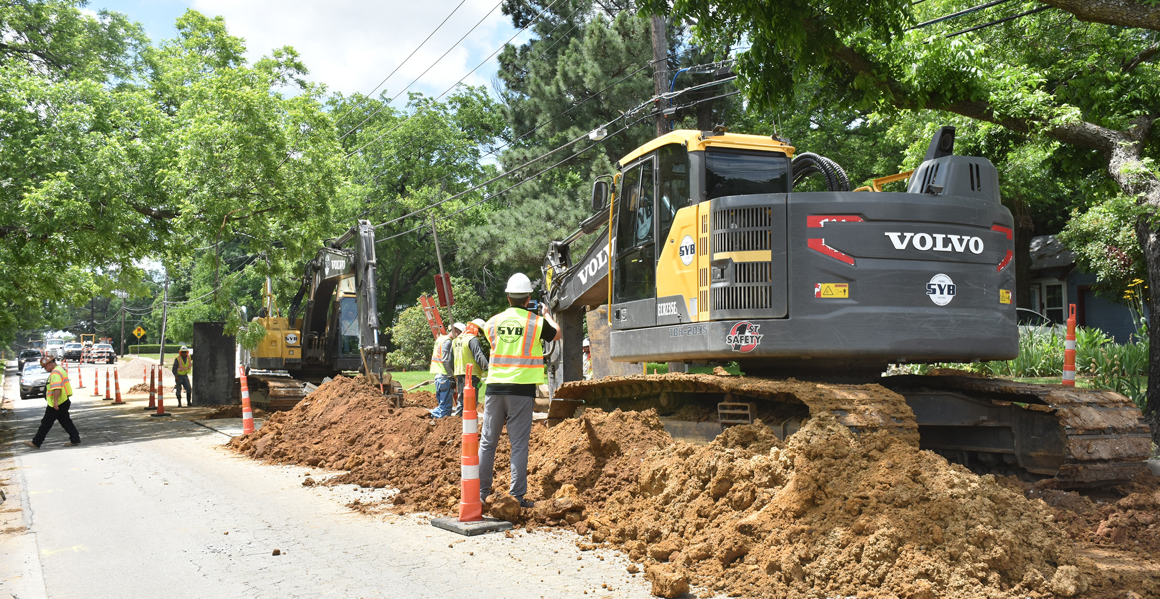 Twenty-years on, Tyler is back in Arlington overseeing a water line project placing 5000 feet of 12-inch and 1000 feet of 16-inch pipe and valves. “Working in these congested areas, with the ECR235 you don’t have the overhang of the counterweight when they swing into traffic lanes.” (The ECR235E has a compact 5’ 11” tail swing radius.) This helps SYB keep construction disruption to a minimum - and sparks appreciative comments from drivers and residents on the SYB Facebook page.