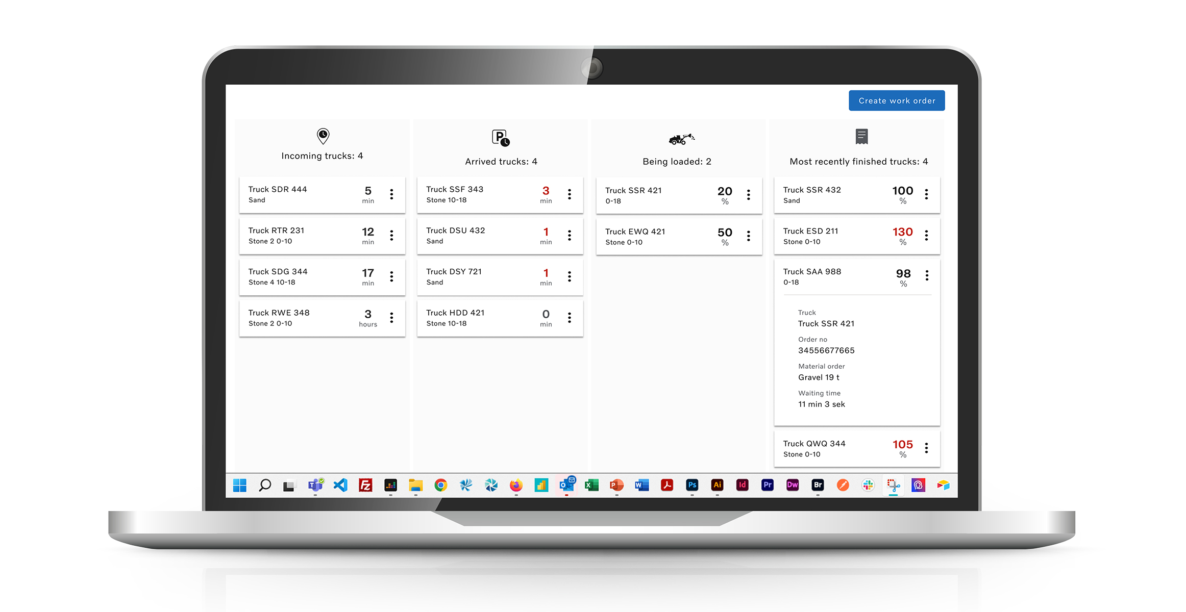 This solution will minimize the time spent on administration dealing with orders and tickets on paper and optimize the flow in terms of prioritizing the incoming trucks and use of the loading machine.