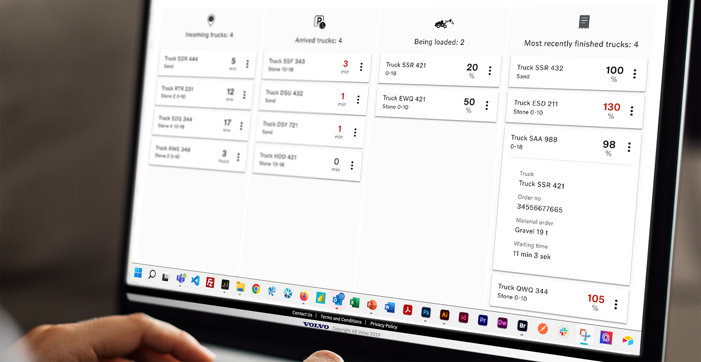 Truck drivers can place digital orders directly to the site via the Connected Load Out app. The order, plus an ETA is instantly visible from the Volvo Co-Pilot and the Office Portal.